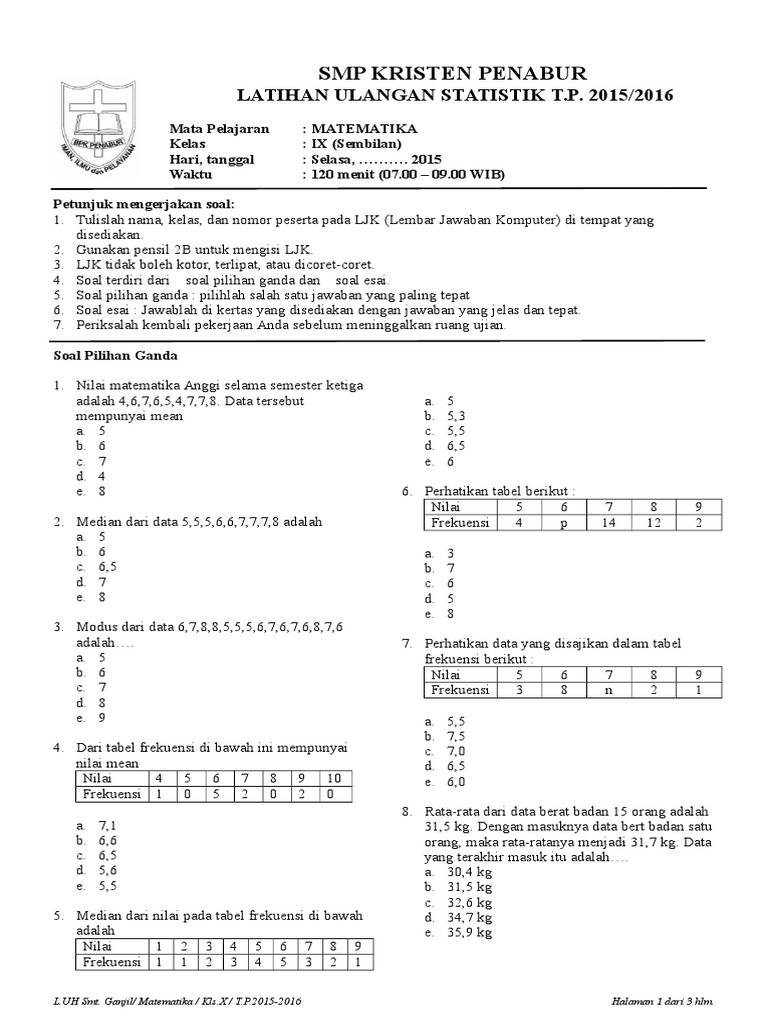 Contoh soal dan pembahasan statistika pendugaan. Semoga postingan ini bermanfaat bagi pembaca dan bisa dijadikan sumber literatur untuk mengerjakan tugas. Contoh soal statistika data kelompok kuliah. Doc soal uas statistika perguruan tinggi imroatusani n k academia edu. Bean machine atau quincunx adalah salah satu alat bantu yang bisa dipakai untuk memberikan training statistik adalah sumber foto. 12 contoh soal uts statistika from image.slidesharecdn.com soal pkn kelas xi ini sangat cocok untuk digunakan sebagai alat untuk mengukur pengetahuan siswa tentang materi yang dia dapat di semester 2. Pada pembahasan kali ini, akan membahas mengenai statistik. Tria ningrum rohmawati prodi akuntansi fakultas ekonomi universitas pamulang jalan surya kencana nomor 1 pamulang 1 kata pengantar segala puji dan syukur saya panjatkan kehadirat allah swt karena atas limpahan rahmat dan karunia nya saya dapat. Contoh soal dan pembahasan logika matematika. Contoh soal dan pembahasan statistika ekonomi. Berikut ini adalah soal ulangan tengah semester (uts) atau yang dalam kurikulum 2013 dinamakan dengan penilaian tengah semester (pts) mata pelajaran matematika kelas 7 semester 1 (ganjil/gasal) kurikulum 2013. Pelajari rangkuman materi statistika dilengkapi dengan contoh soal statistika beserta pembahasan. Contoh soal statistika kuliah semester 2.